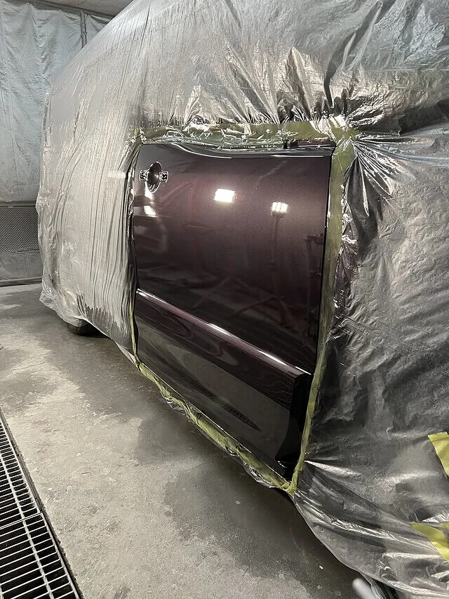 マスキングをし、ビニールをまとわせ飛沫からお車をよごさない!