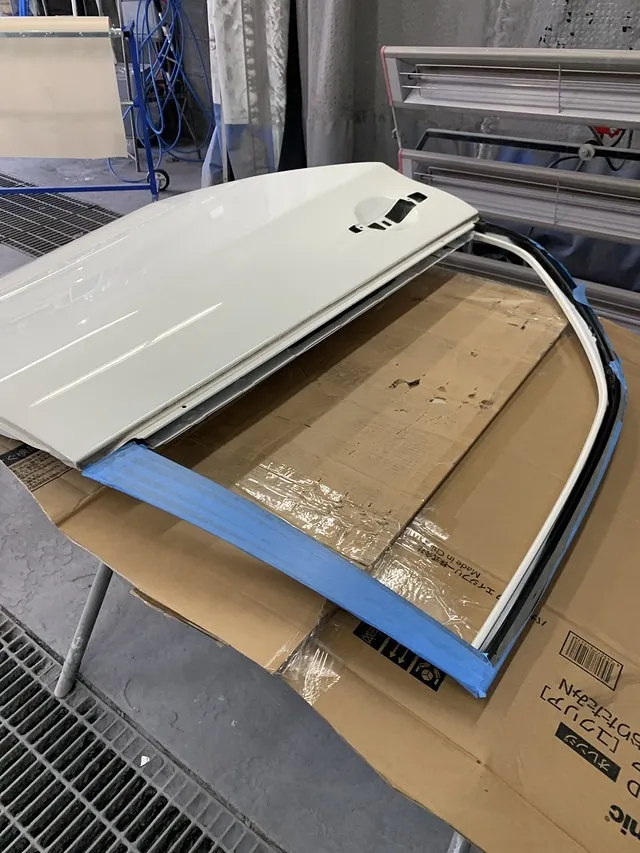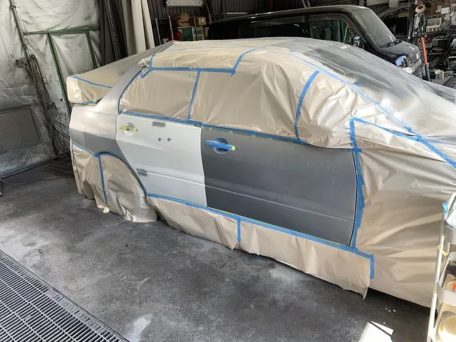 中古パーツはマスキング!ボデーはパテ処理を職人ワザで施工してまいります!
